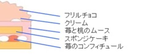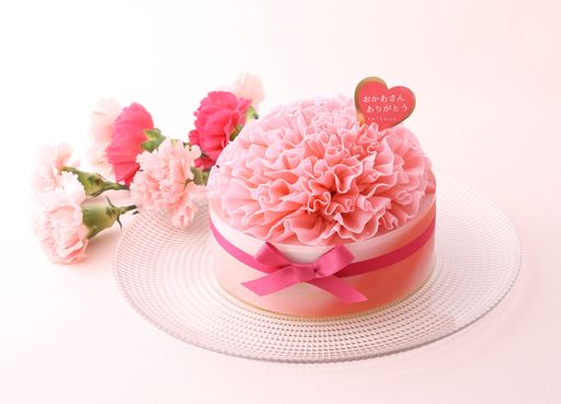 ホワイトチョコで形づくったカーネーションを苺と桃のさわやかなムースに乗せて